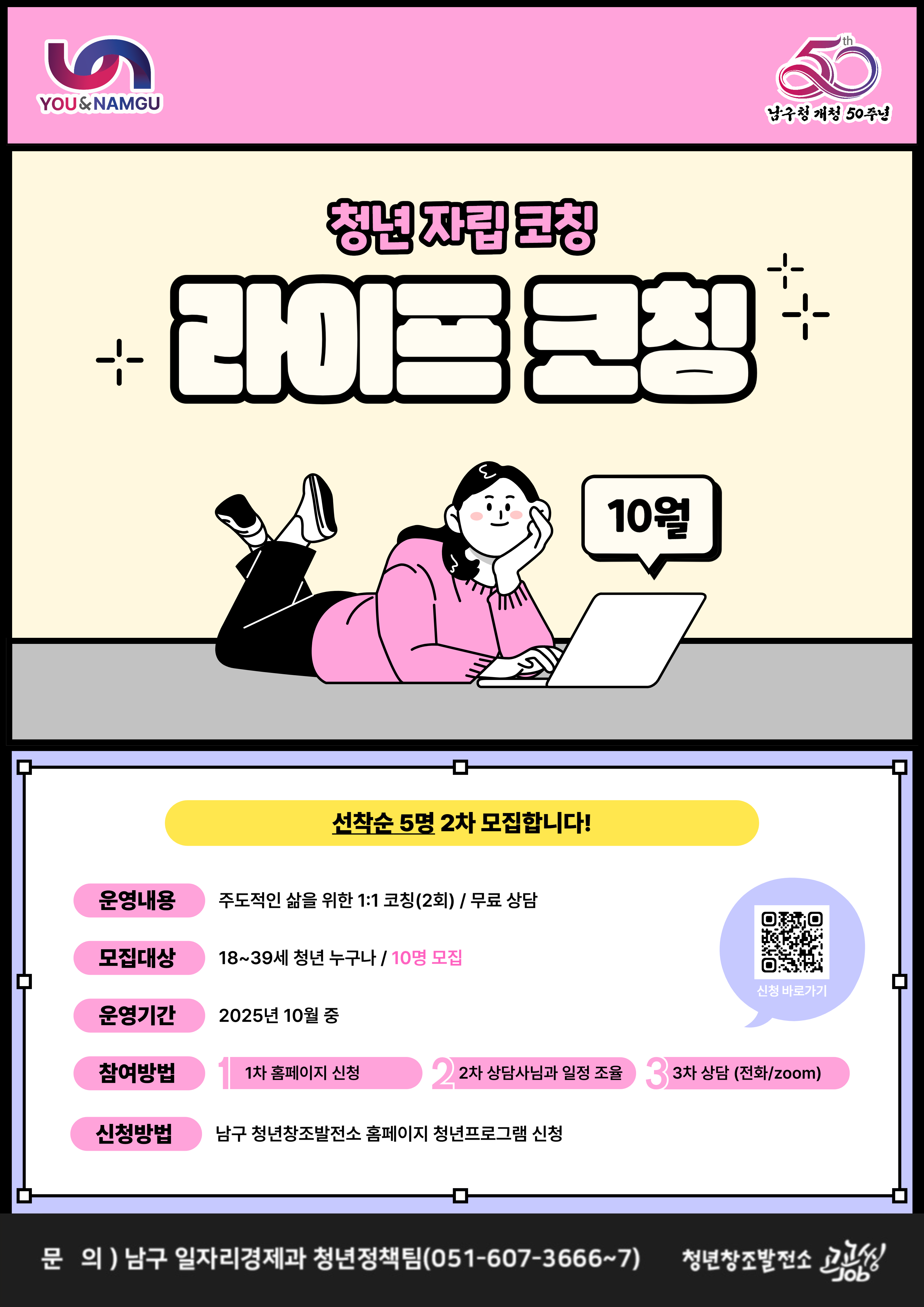 - 문의 남구 일자리경제과 청년정책팀 (051-607-3666~7)
