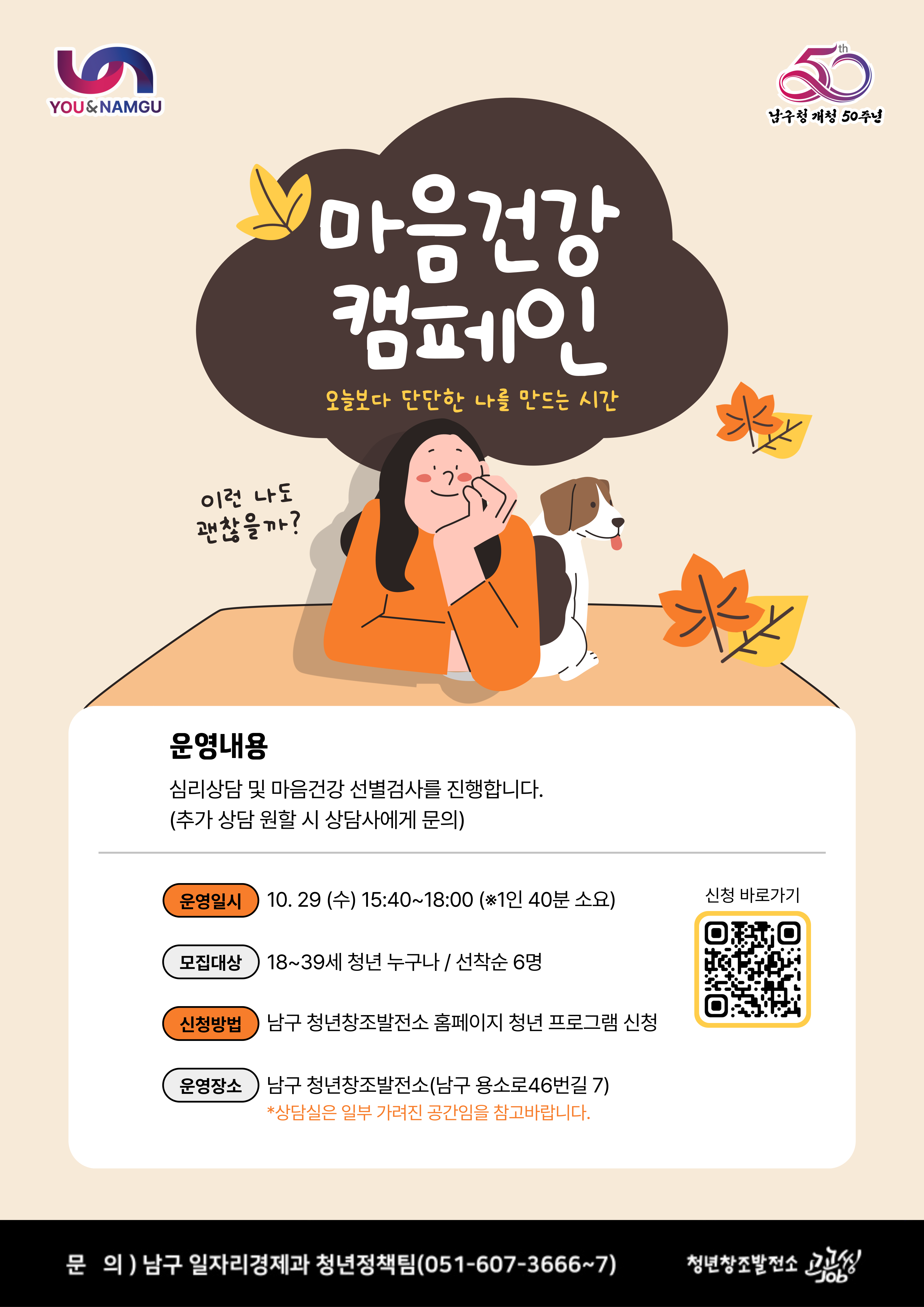 - 문의 남구 일자리경제과 청년정책팀(051-607-3666~7)