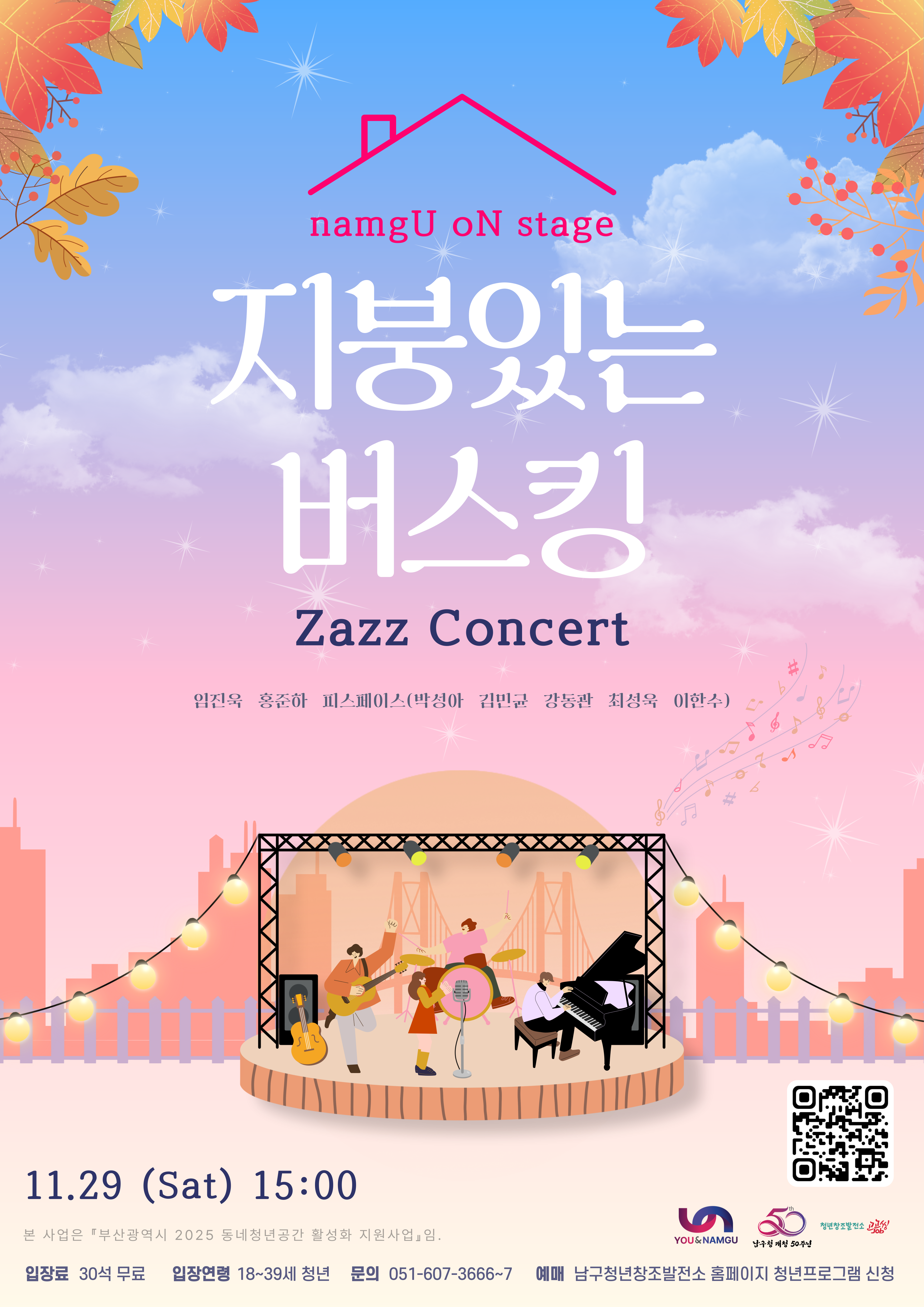 - 내용 <남구 온 스테이지(namgU oN stage)>는 18~39세 청년 누구라면 무료로 관람이 가능하며,