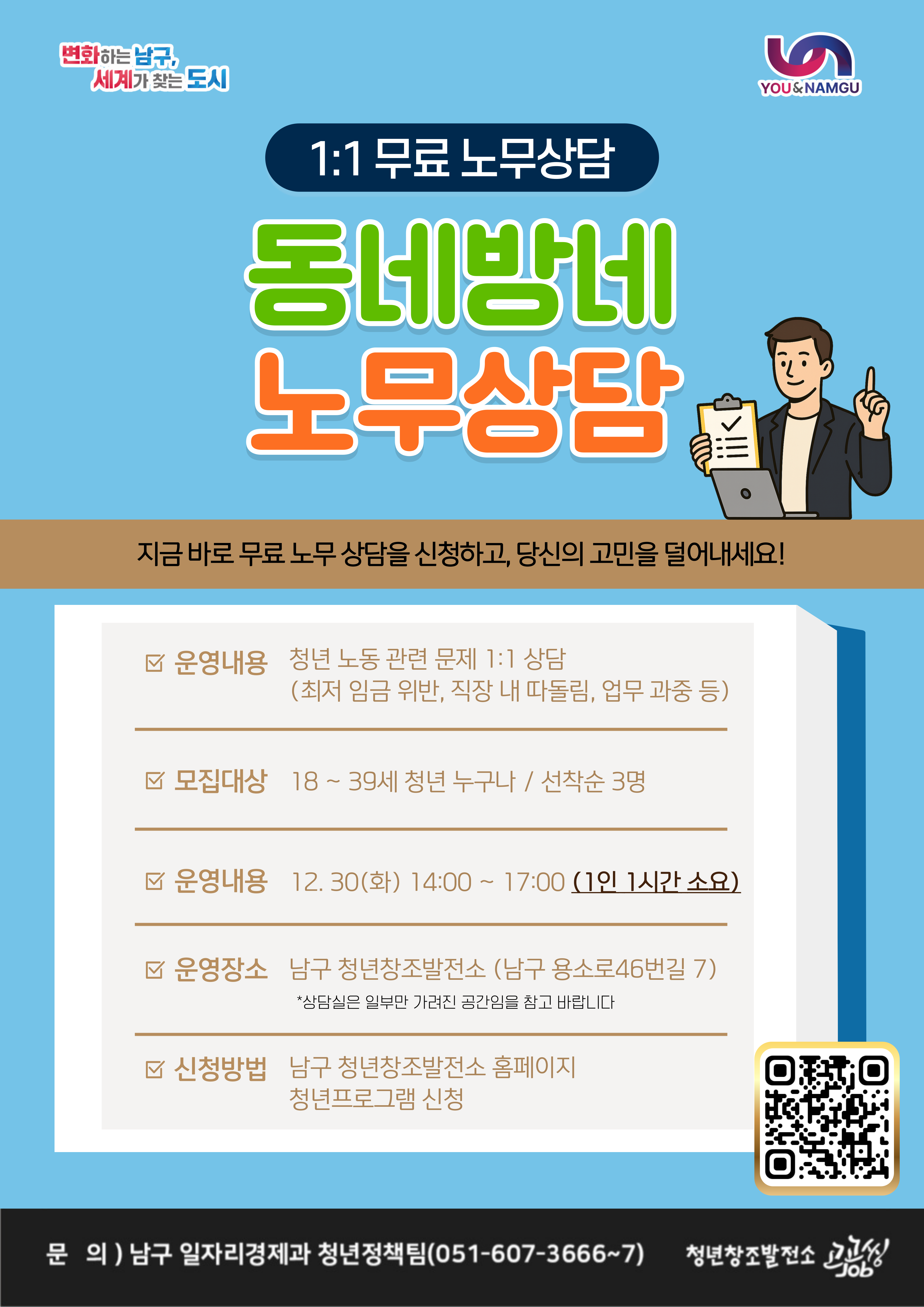 - 문의 남구 일자리경제과 청년정책팀(051-607-3666~7)