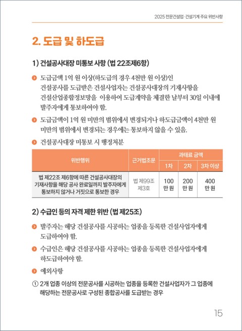 Page 15 - 2025 전문건설업·건설기계 주요 위반사항