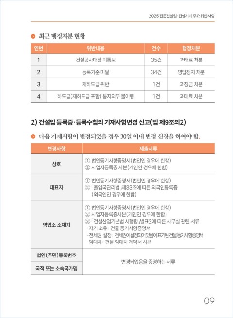 Page 9 - 2025 전문건설업·건설기계 주요 위반사항